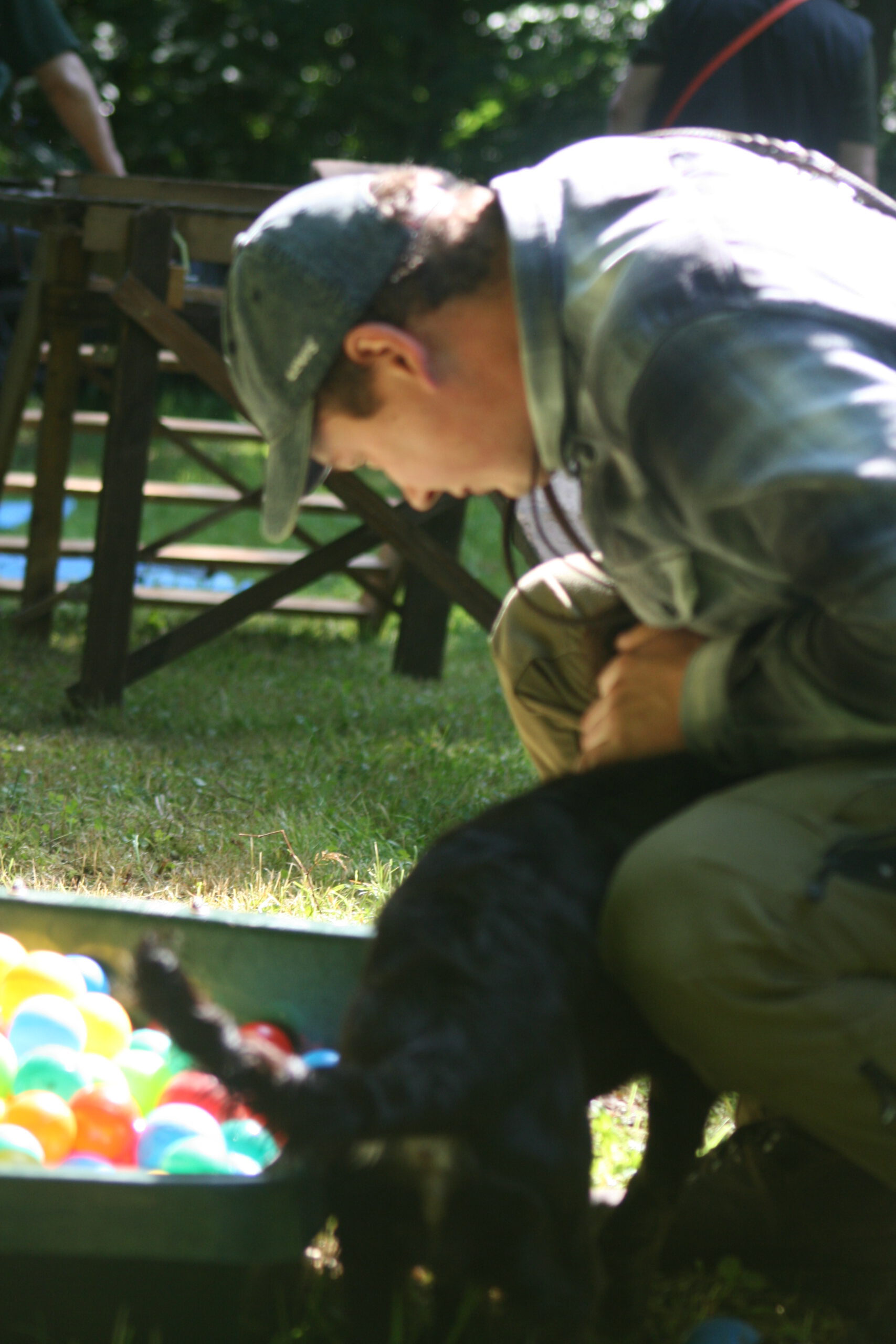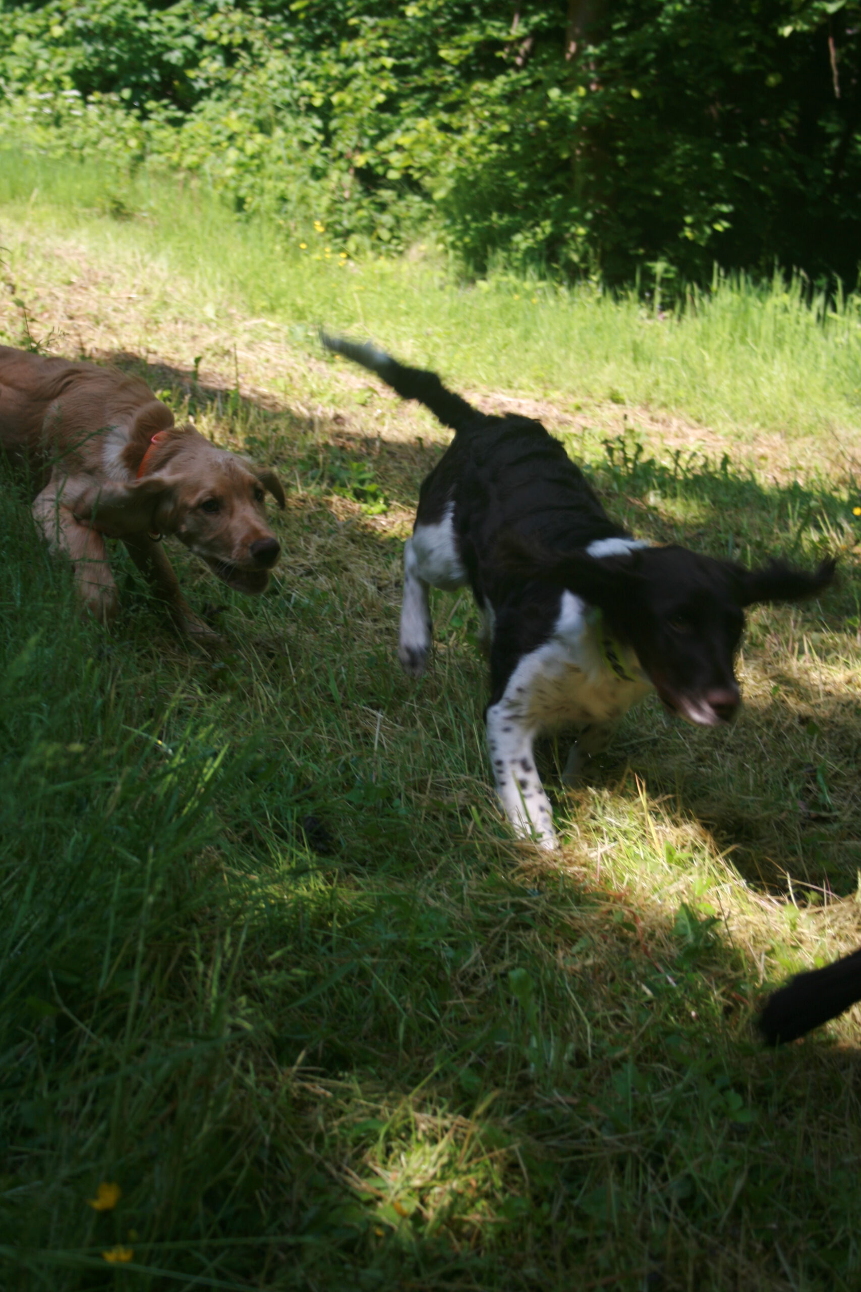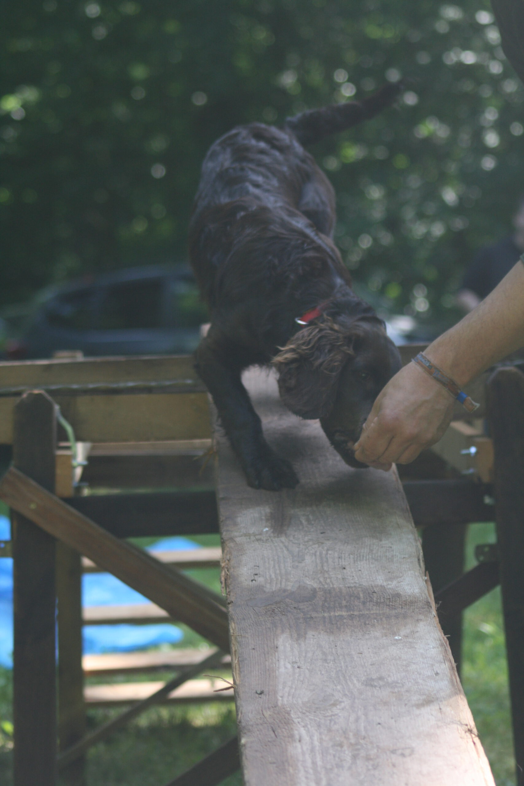 Es hatten sich 9 Junghunde mit einem Alter bis 8 Monate angemeldet und letztendlich sind 8 Hunde mit ihren Hundeführer und Gefolge unserer Einladung gefolgt. Der Vorstand der Landesgruppe und ihre Helfer hatten sich für die jungen Hunde reichlich Aufgaben ausgedacht, welche an diesem Tag bewältigt werden konnten. Hierbei ging es von einem Parcours mit Dingen aus dem Alltag über die Wasserfreude bis hin zu einer Pendelsau. Die Stationen wurden durch die Hundeführer und ihre Hunde trotz des durchwachsenden Wetter sehr gut angenommen. Es war eine wahre Freude die jungen Hunde hierbei zu beobachten.